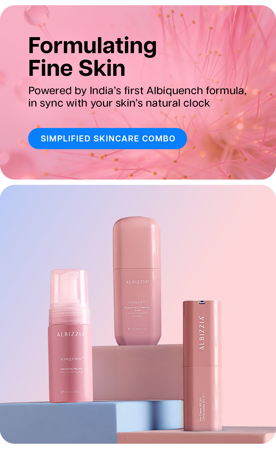 Albiquench is Albizzia’s signature formulation made from seven bioactive compounds. These actives work together to deliver high antioxidant strength, deep hydration, and daily skin defence.